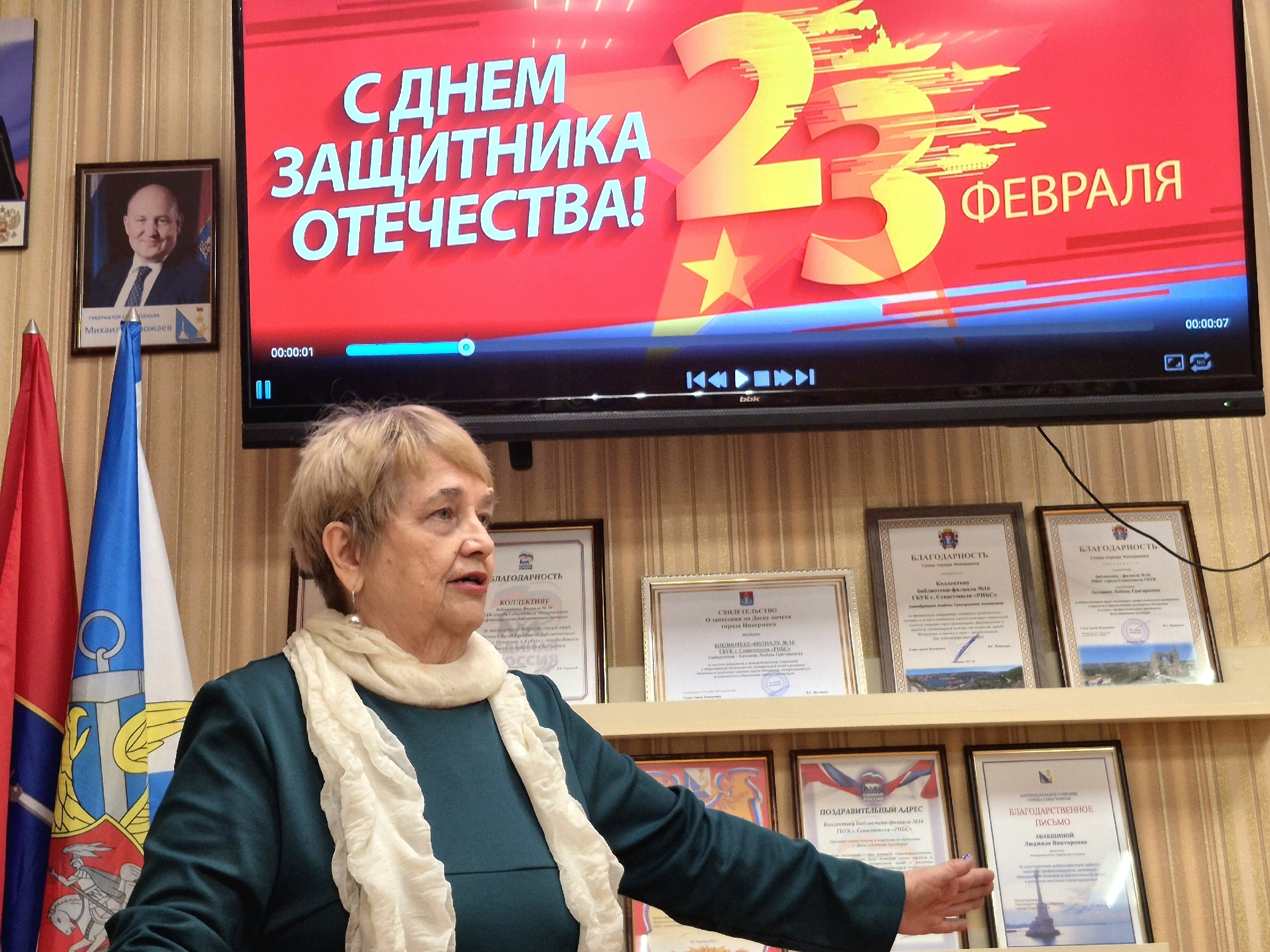 Вечер провела депутат Инкерманского городского Совета, библиотекарь Людмила Викторовна Абакшина. От имени местной администрации города Инкермана к присутствующим обратился помощник главы города Сергей Сергеевич Игнатович. Он поздравил гостей с праздником, подчеркнул значимость воинского служения и выразил слова признательности защитникам Отечества и их семьям.
