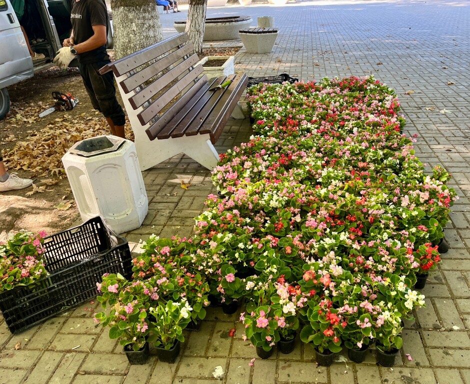 🔹 Высажены свежие цветочные композиции в клумбах и вазонах