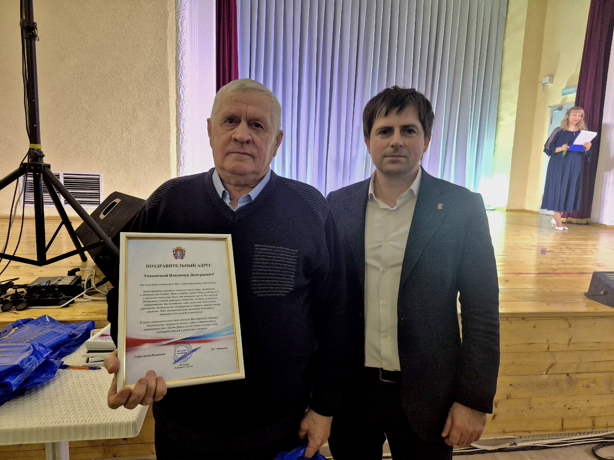 В рамках мероприятия помощник главы Сергей Сергеевич Игнатович вручил поздравительный адрес и памятный подарок от имени главы города Инкермана Вадима Сергеевича Путинцева. Слова благодарности и поддержки были адресованы участнику специальной военной операции, воину-интернационалисту и ветерану военной службы Российской Федерации.