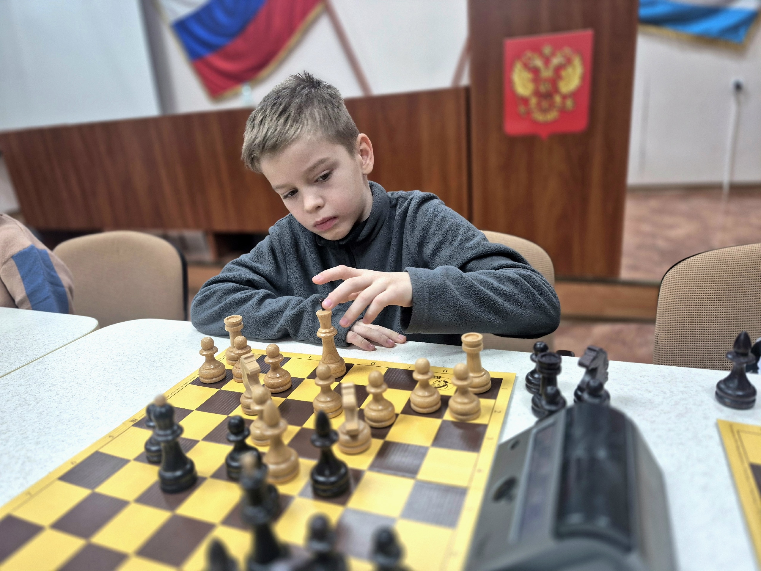 В зале царила сосредоточенная и одновременно дружелюбная атмосфера. Участники демонстрировали стратегическое мышление, выдержку и уважение к соперникам, а зрители поддерживали игроков и с интересом следили за напряжёнными партиями.