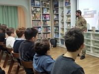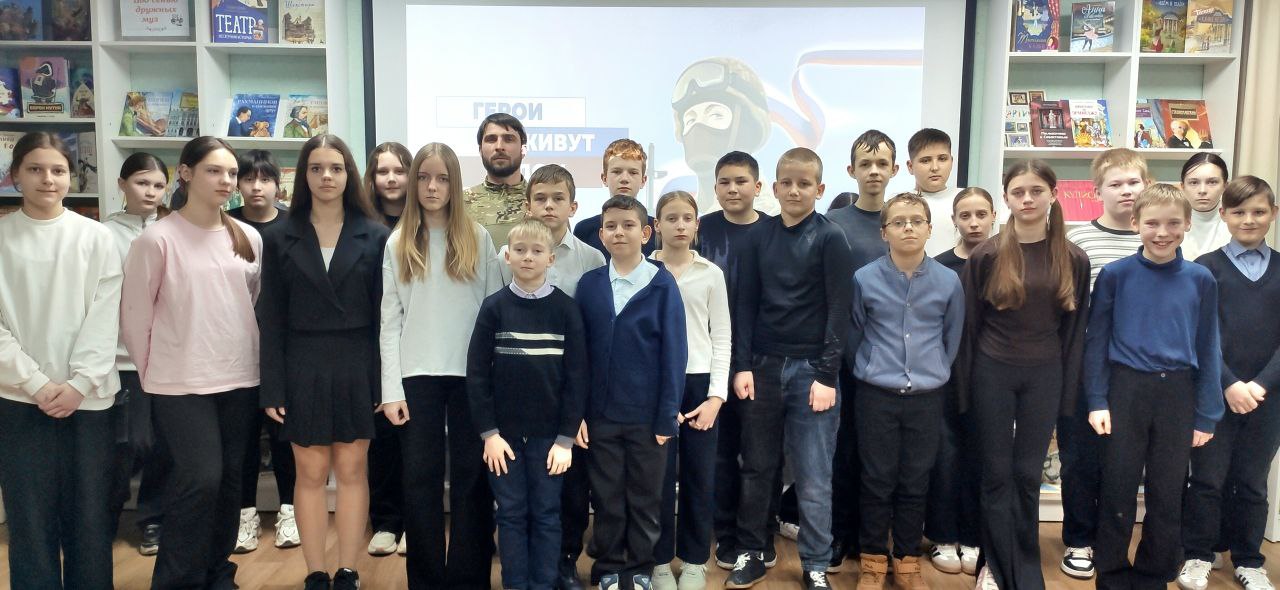 В детской библиотеке-филиале №10 состоялась встреча школьников с участником специальной военной операции Андреем Ермашовым.