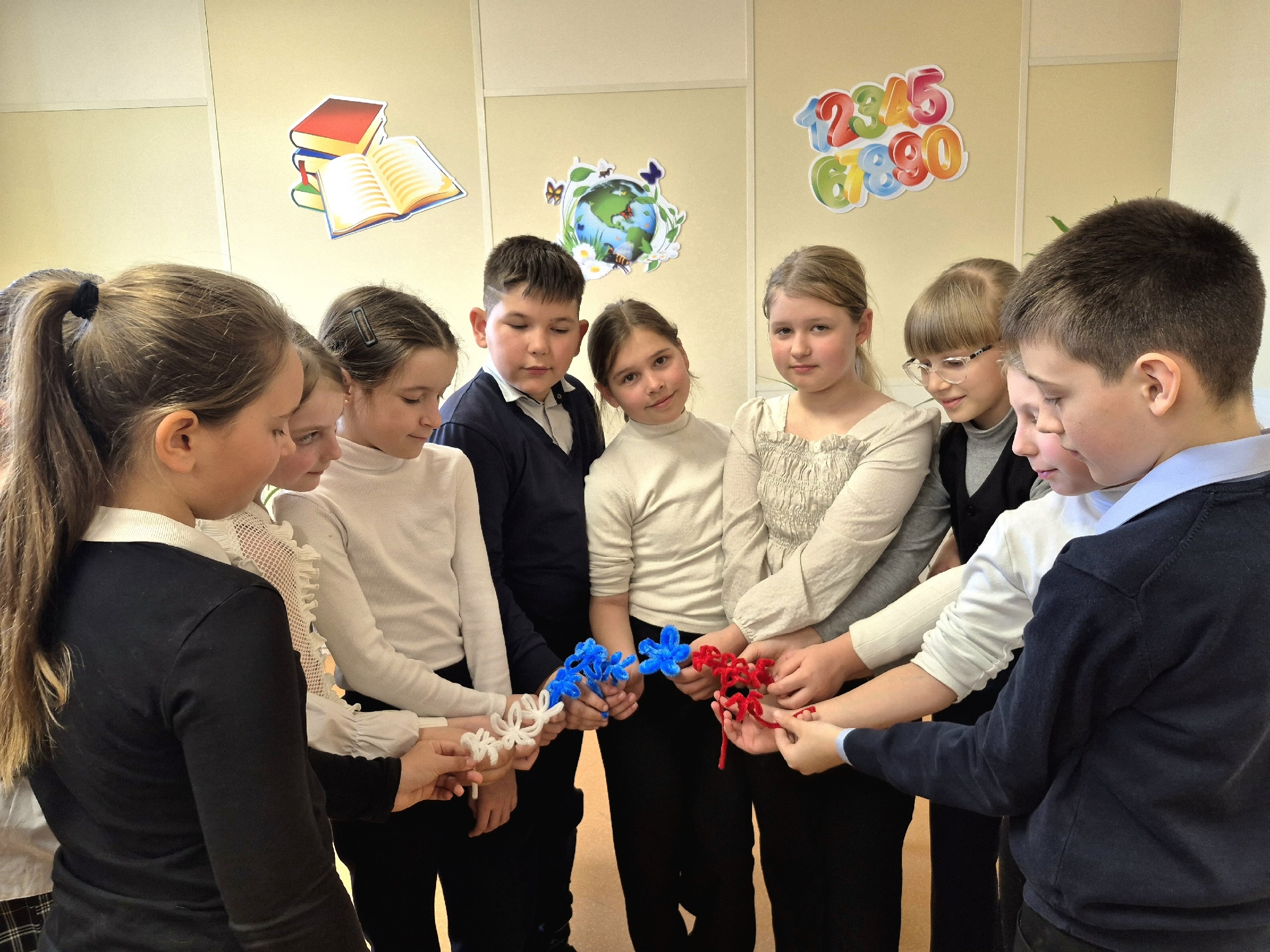 — мастер-класс по изготовлению цветов из синельной проволоки в цветах триколора, который провела Ирина Владимировна Плужник.
